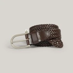 Vegetable tan leather braided belt with a buckle inspired by the shackles on a boat.
