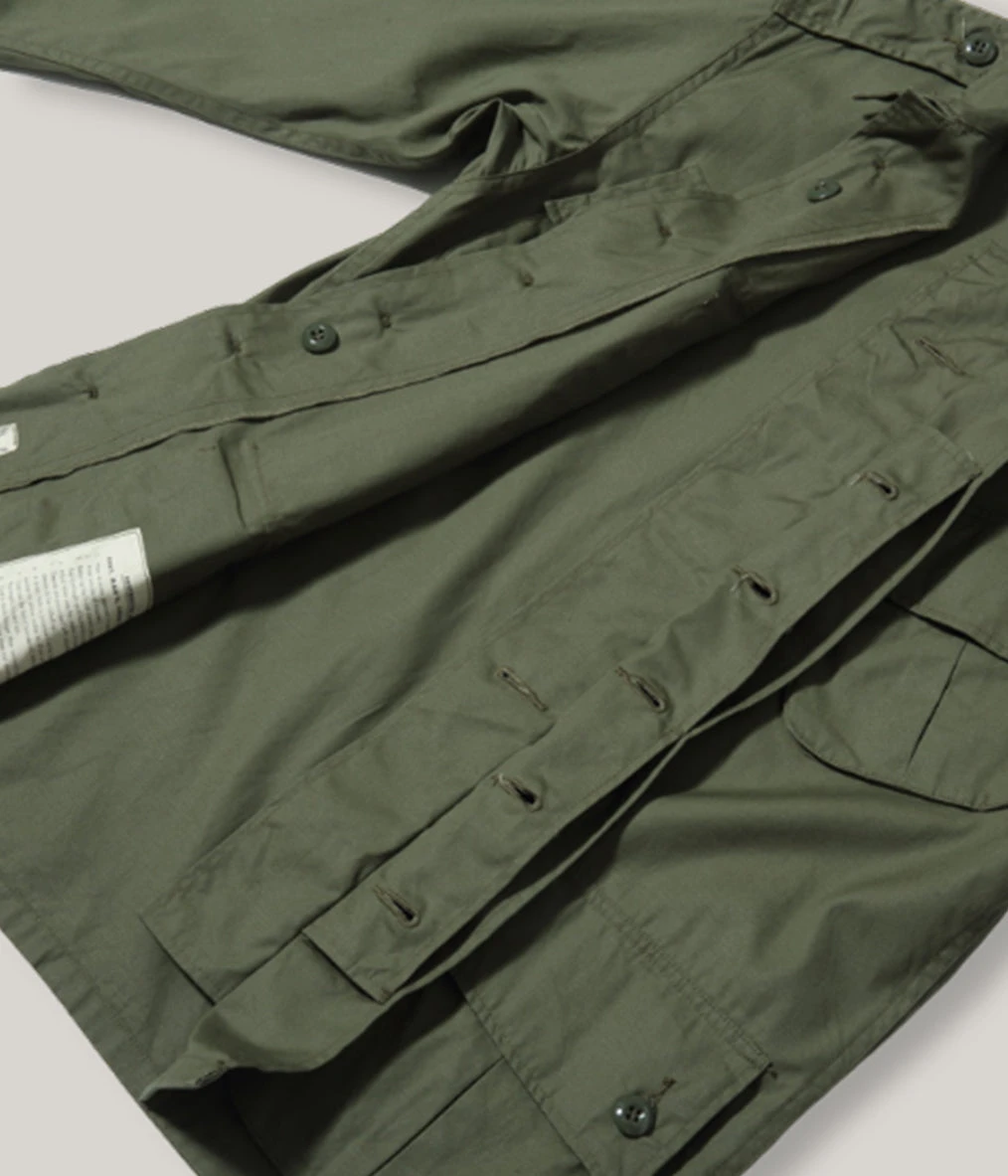 Modelled on the GI’s jacket from the early part of the Vietnam War, (1964 specifically) the guys at Toyo Enterprises have replicated the densely woven poplin weave to create a super lightweight jacket that is naturally water-resistant yet performs superbly in the heat, as you can imagine. No detail has been spared on this reproduction, from epaulets, side adjusters and bellow pockets. The breast pockets are slanted, with bar-tacked reinforcements and pen slots. All buttons are urea, of course. The beauty of this piece is it is so versatile and can be worn by peacocking Pitti Uomo folk, vintage enthusiast and budding photographer alike.ย