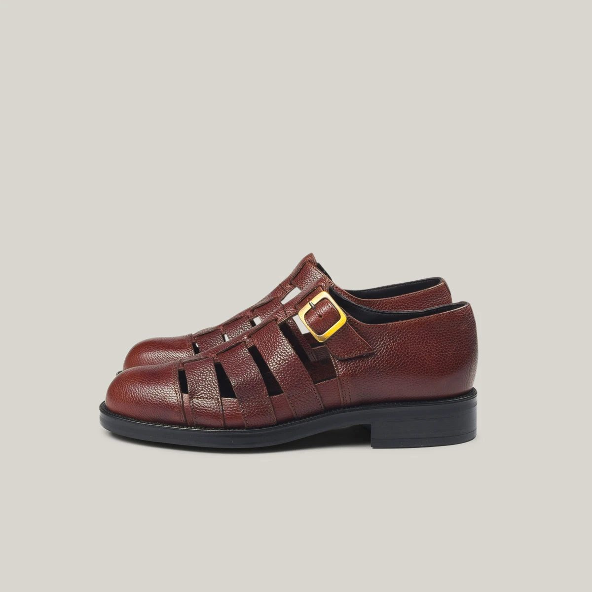 A sandal that you can comfortably traverse the city in and then dine in splendour after, constructed from a chrome-free leather in textured vegetable, tanned coffee-coloured leather. Cemented to this is the hard as nails sole unit that is both anti-slip and anti-abrasion.ย