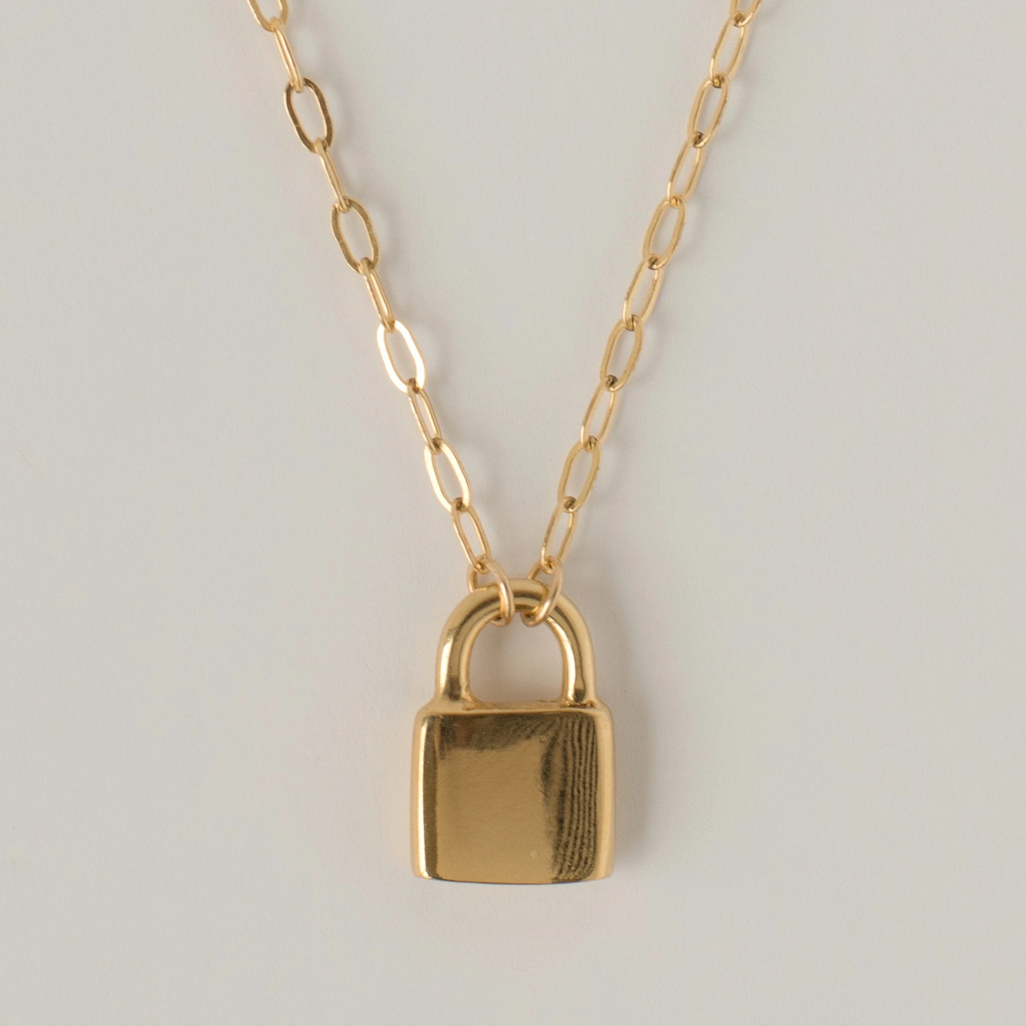 18” gold filled chain, 11mm x 15mm gold vermeil brass pendant.