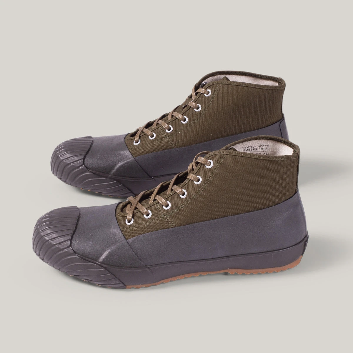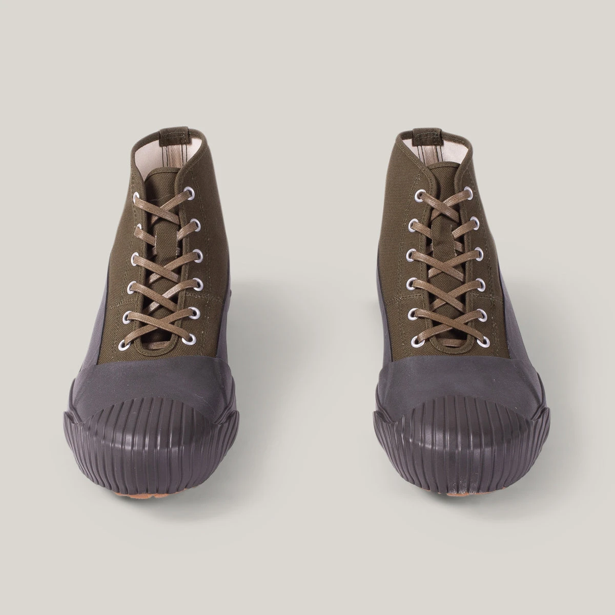The All weather is part military trainer, part duck boot and is the most robust, durable sneaker we think there is. This version comes in army green canvas with khaki rubber surrounding. We encourage jumping in puddles in these.