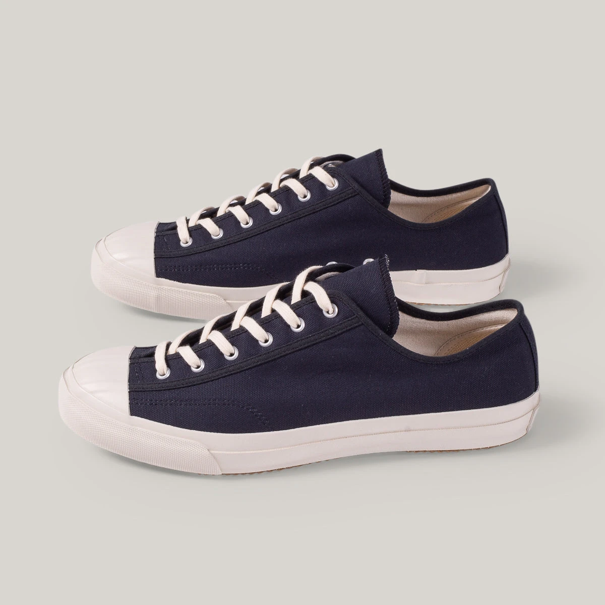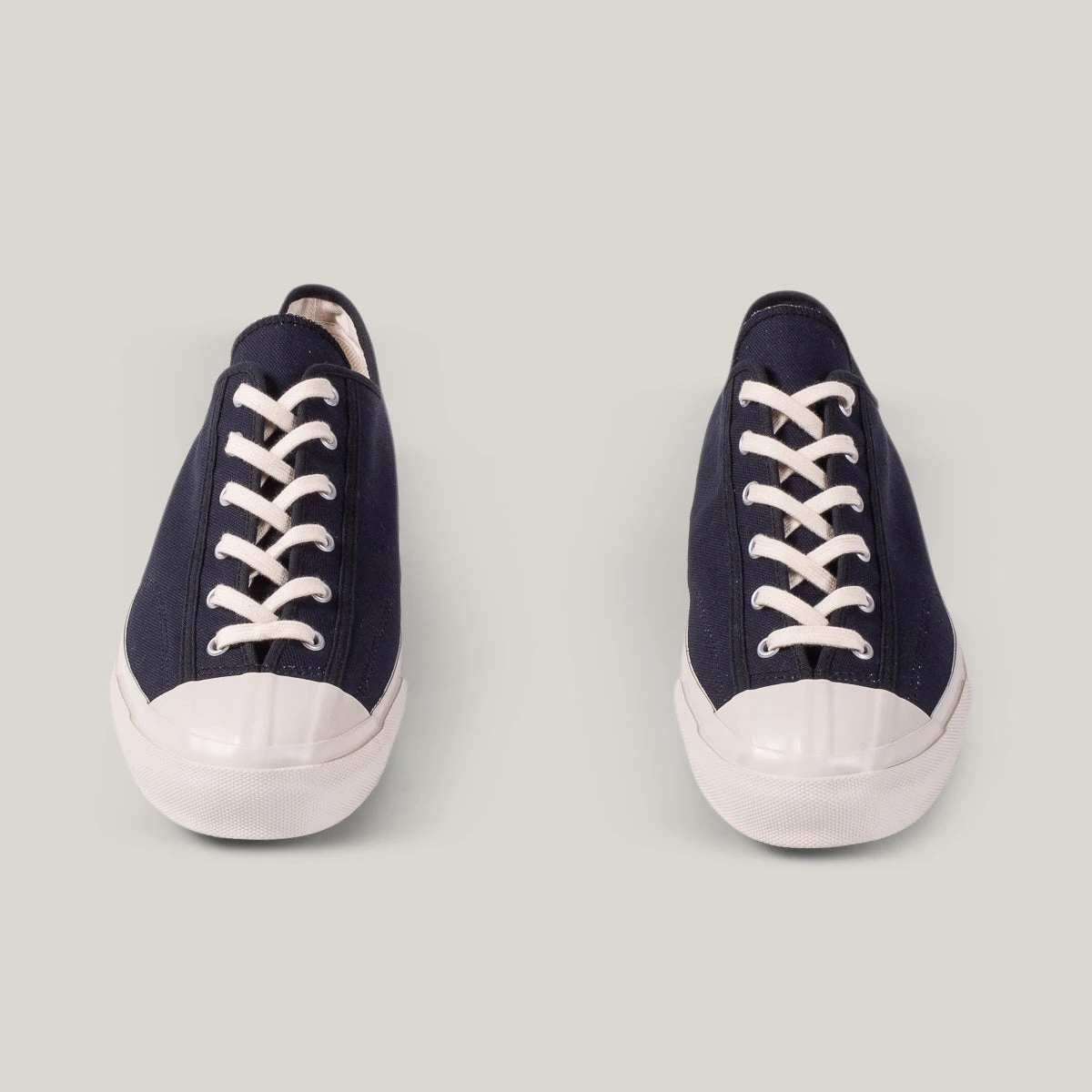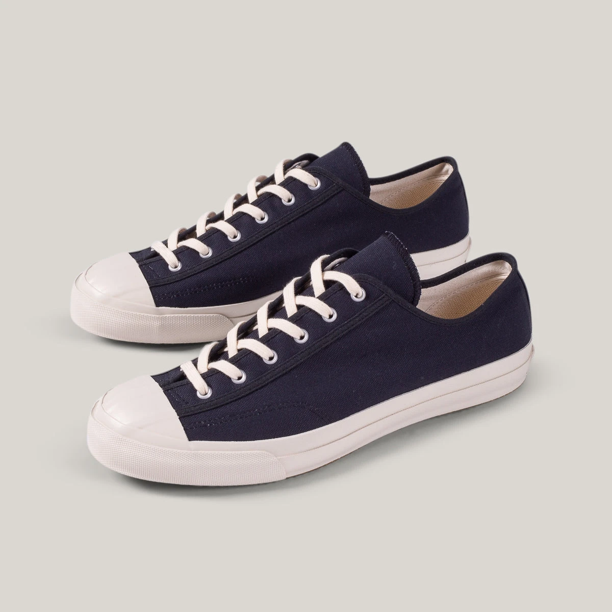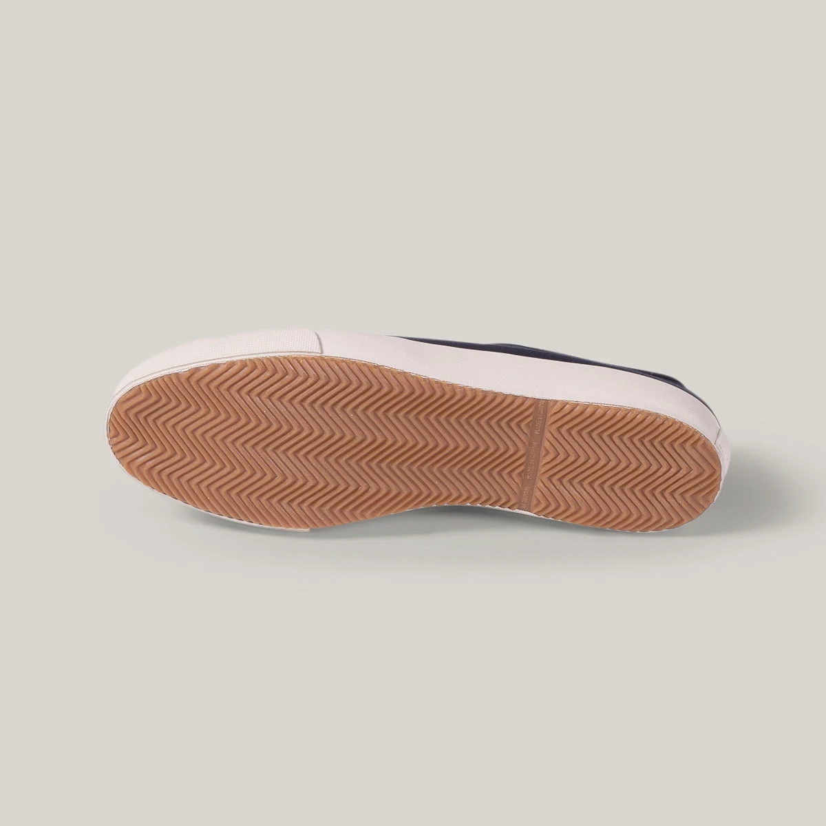The Gym Classic is their classic take on a gym shoe, light and refined whilst still being strong, robust and durable. This version comes in navy blue canvas with off-white rubber surrounding.