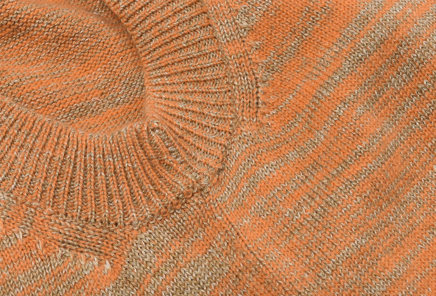 A tangerine dream of a vest, made in a linen-heavy melange knit, to keep you breezy yet warm in hotter times. Details include raw edge bottom with side slits and epaulette details on the shoulders as a nod to its military origin.