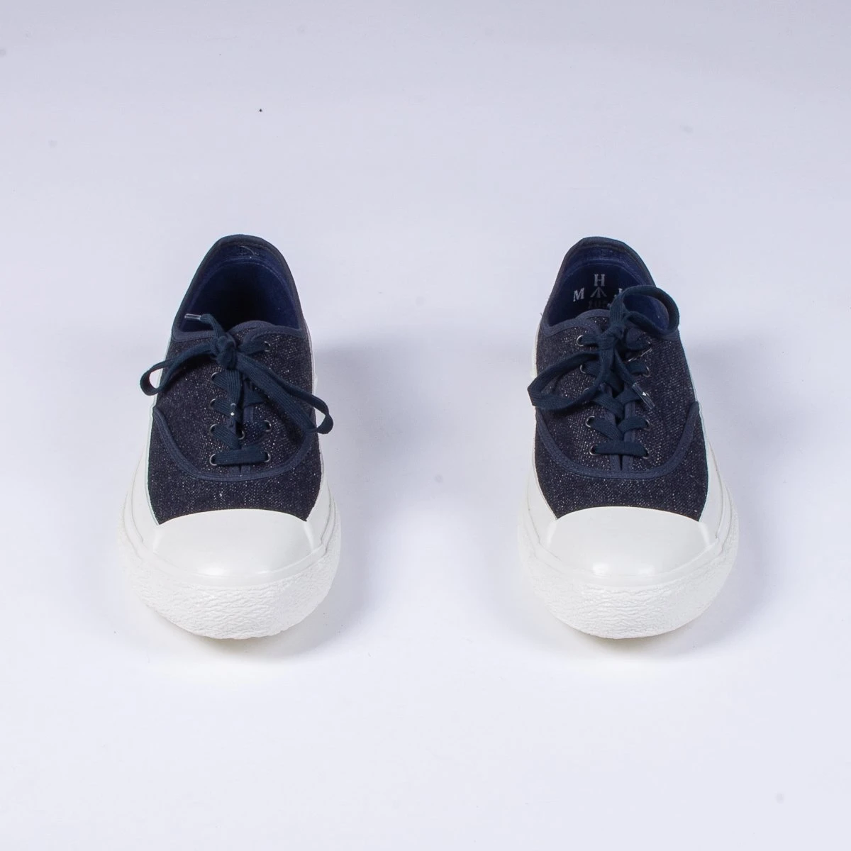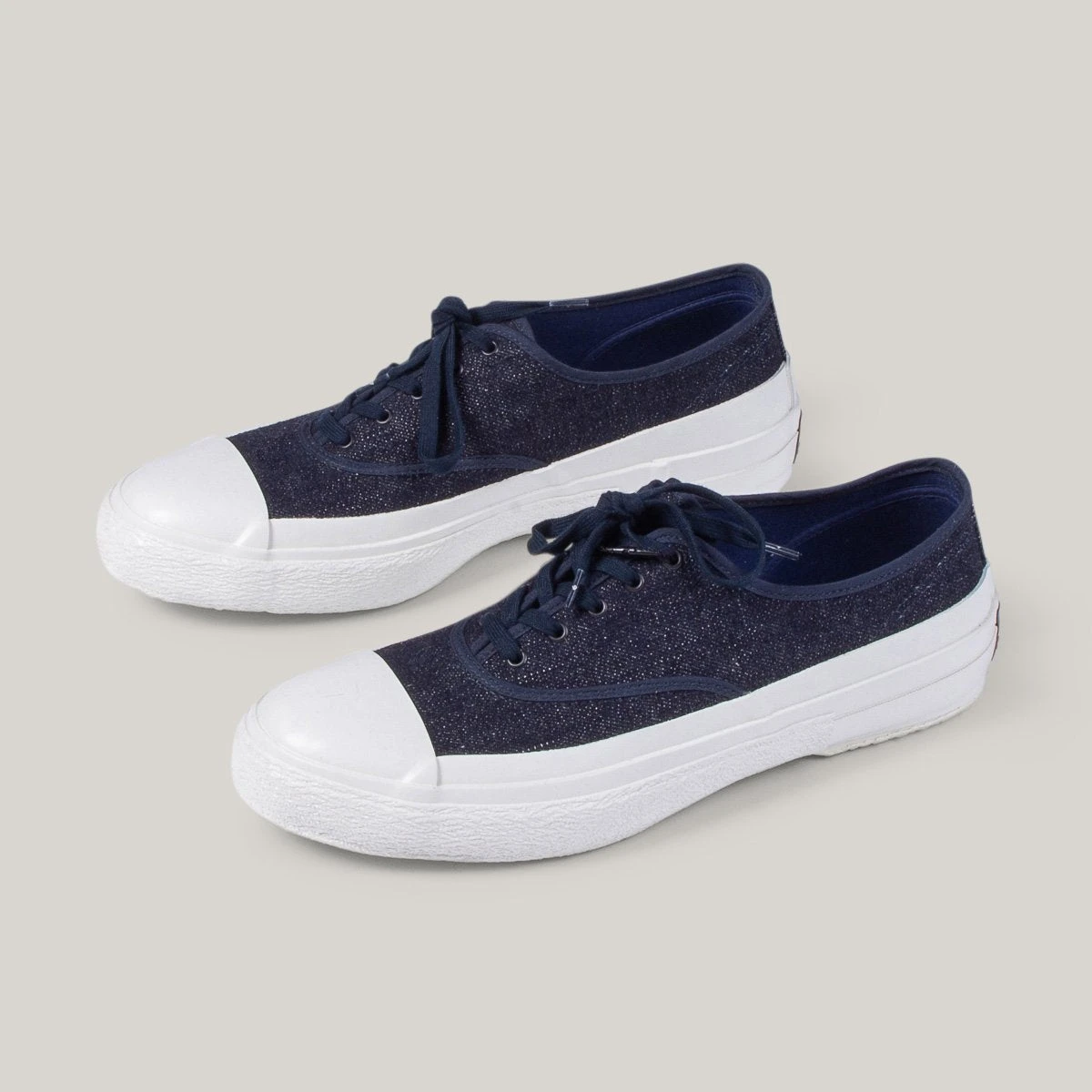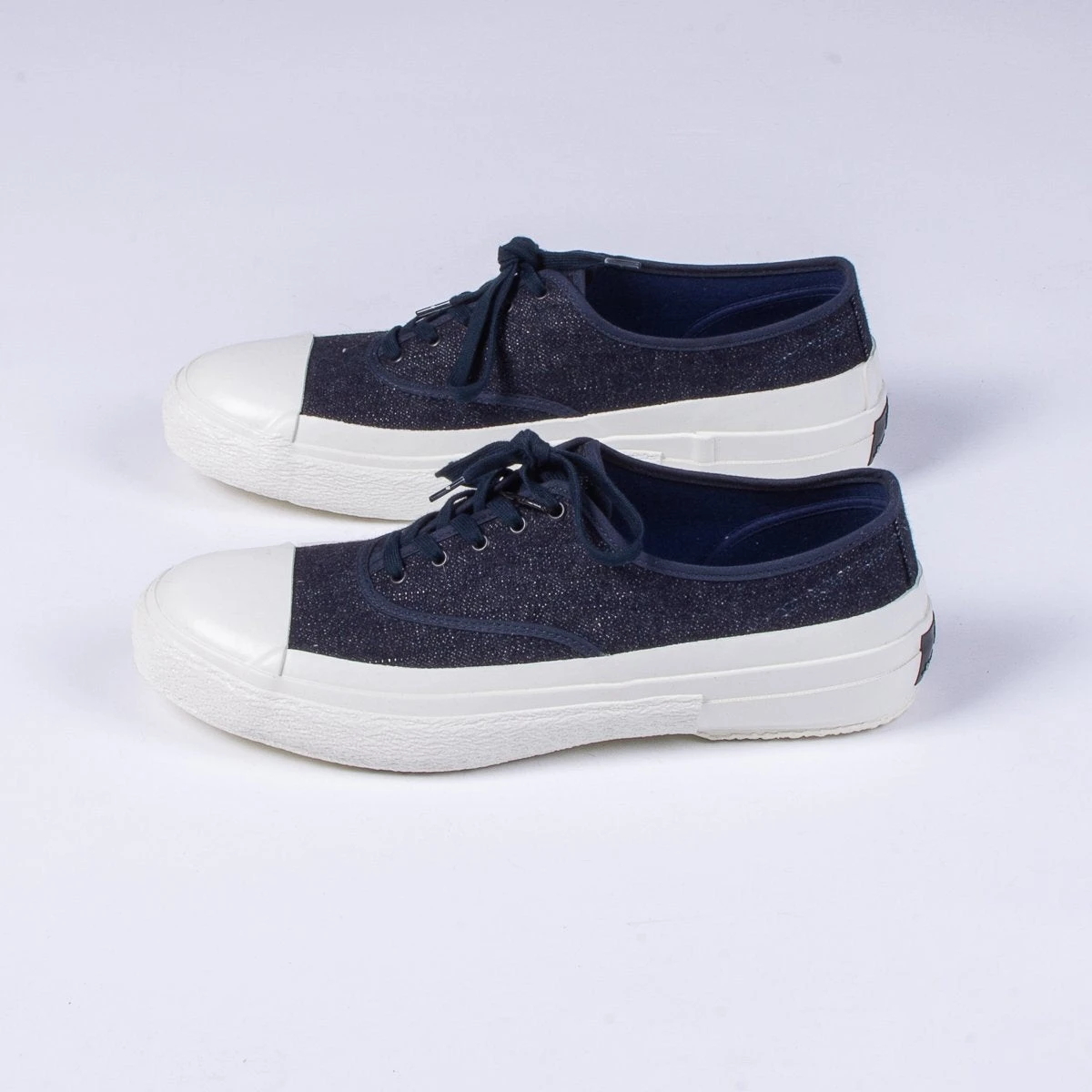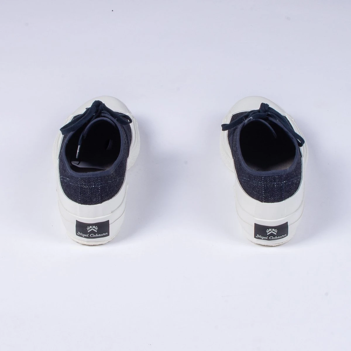 This season Nigel has taken inspiration from a 1940’s deck shoe,ย this version is constructed in a blue 16oz denim with thick white rubber vulcanised sole that covers the entire front toe section.