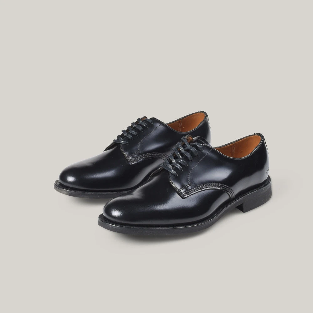 Sanders bring the goods with this female version of the military derby shoe. Built with the same provenance as its male counterpart, it is sleek, strong, comfortable and smart as hell. The perfect accompaniment to almost every formal and smart casual outfit, it is incredibly versatile. Goodyear welted, naturally so it can be resoled time and time again, the upper is high polished leather and the sole is a studded rubber commando for traction, comfort and durability. An absolute classic.