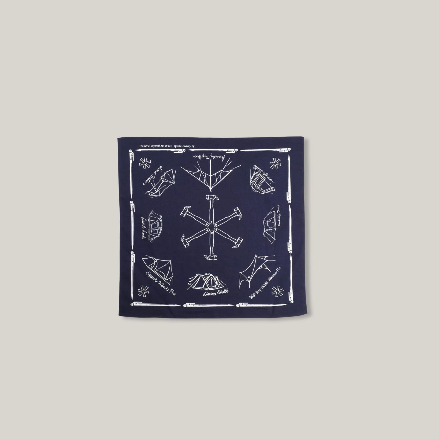 Hand printed in Japan, the Snow Peak bandanas are 100% Cotton and feature camping imagery from their collection, in case you wake up in your tent with amnesia and wonder why you’re all alone in the forest.
