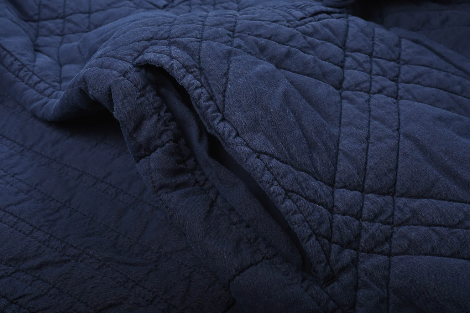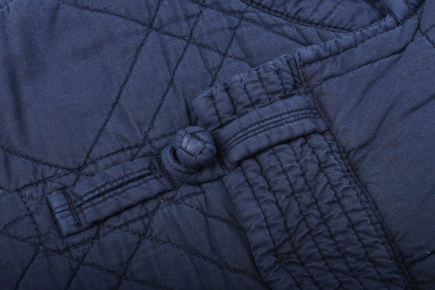 Just wow, this is a thing of beauty.ย Based on a traditional Hanten, this is a lightweight, long overcoat. Made using a vegetable-dyed recycled cotton yarnย that has a soft vintage texture. Featuring a stand collar, wrap front with loop and button closure, and dual side pockets. Please note the four differing patterns used for bothย sides of the body and the sleeves.ย