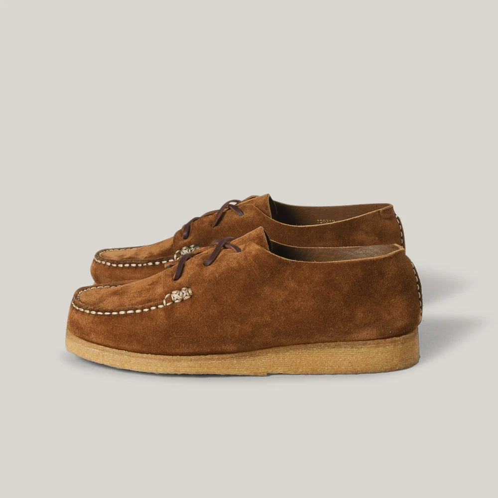 Each pair is entirely hand-cut and hand-constructed from silky full-grain flesh-out leather from Opera leather from Tuscany, Italy. Each piece of the leather is hand-selected and hand-lasted one by one to make sure that only a good part of the skin is used and to make use of the material. The advantages of using full grain, flesh-out leather rather than split suede are two fold; full grain leathers retain their structure, thickness and durability for long-lasting strength and the smooth grain side of the leather wears pleasantly against the skin, negating the need for additional liners. This way, the wearer enjoys the benefits of full grain leather and the pleasant aesthetic of the nappy, suede-like flesh side of the leather.