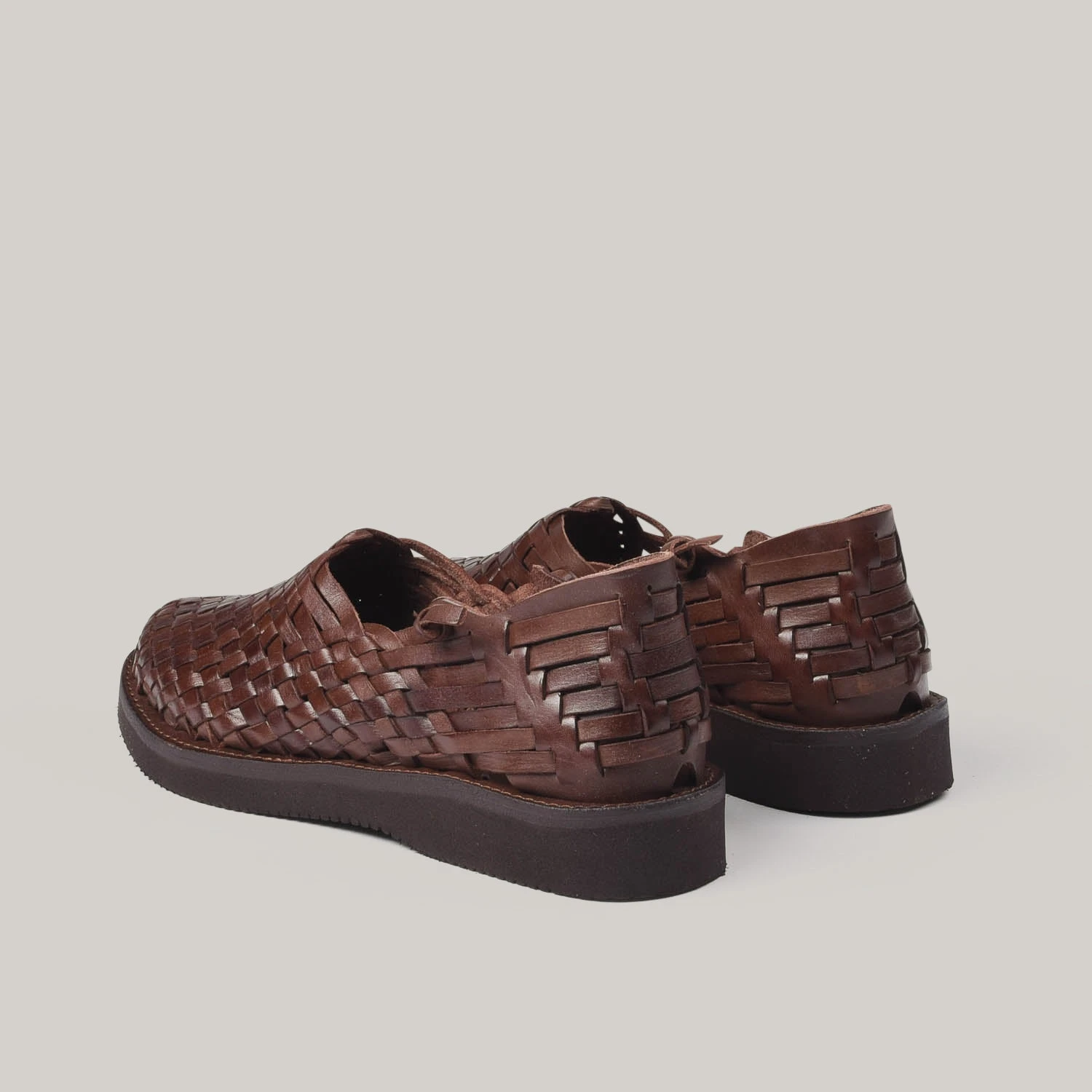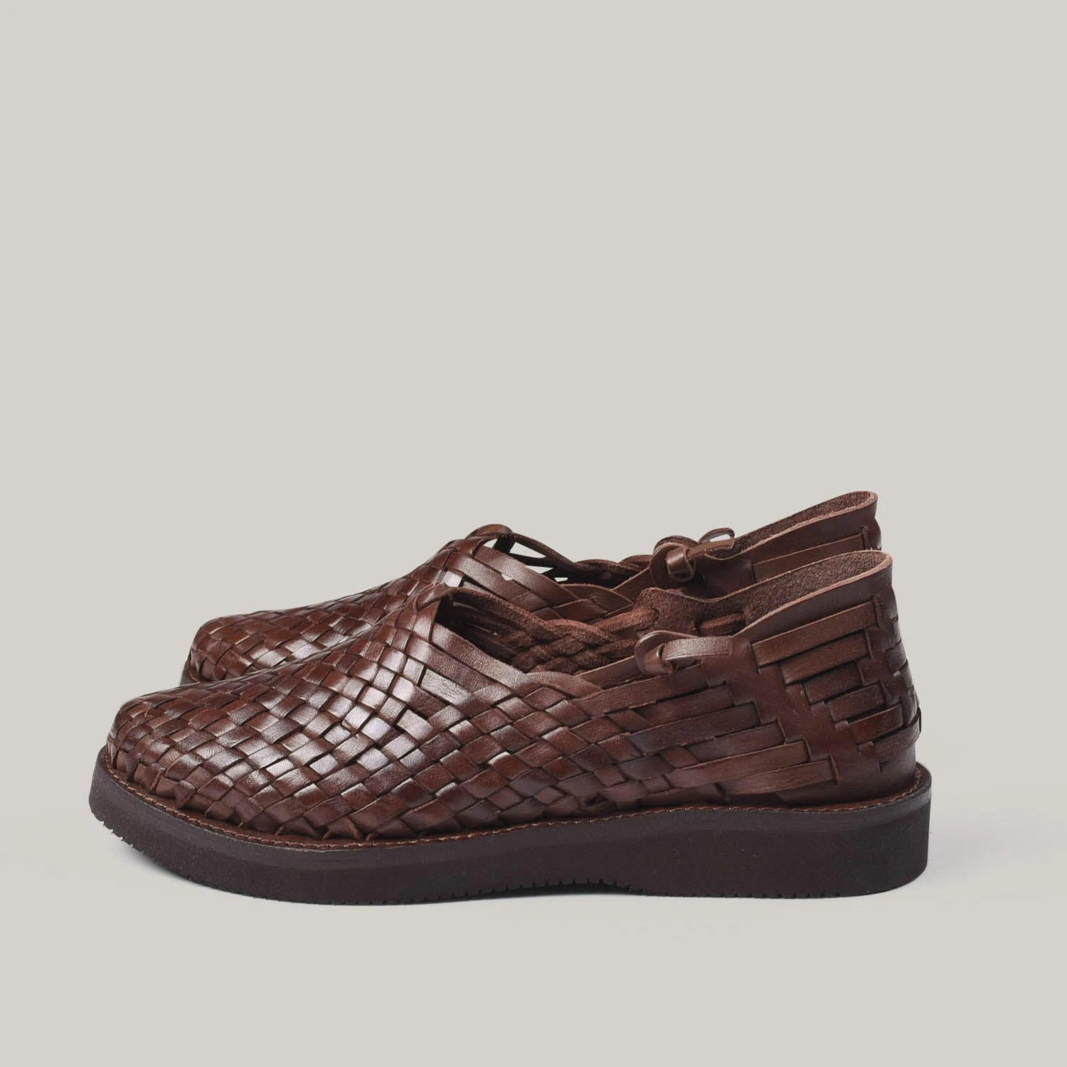 Yuketenโsย Leo design is a classic slip-on design inspired by a primitive Mexican huarache style. Each pair of Yuketen huaraches is handcrafted in Mexico by highly skilled indigenous artisans using traditional huarache construction techniques. Each of the upper leathers are hand-dyed, and entirely hand-cut and hand-woven using Yuketenโs original vegetable-tanned leather, which will give it a lovely patina in time, less so with this dark black though.