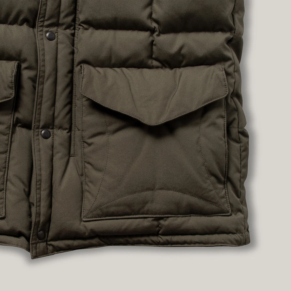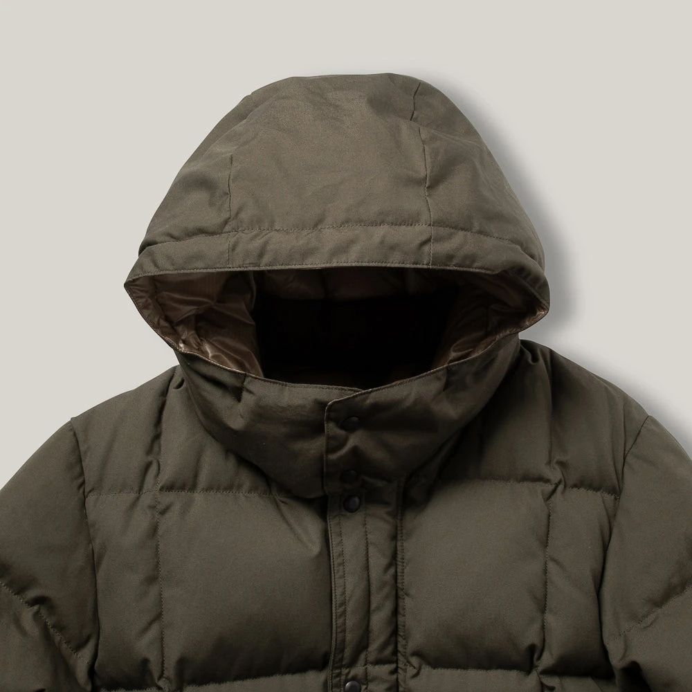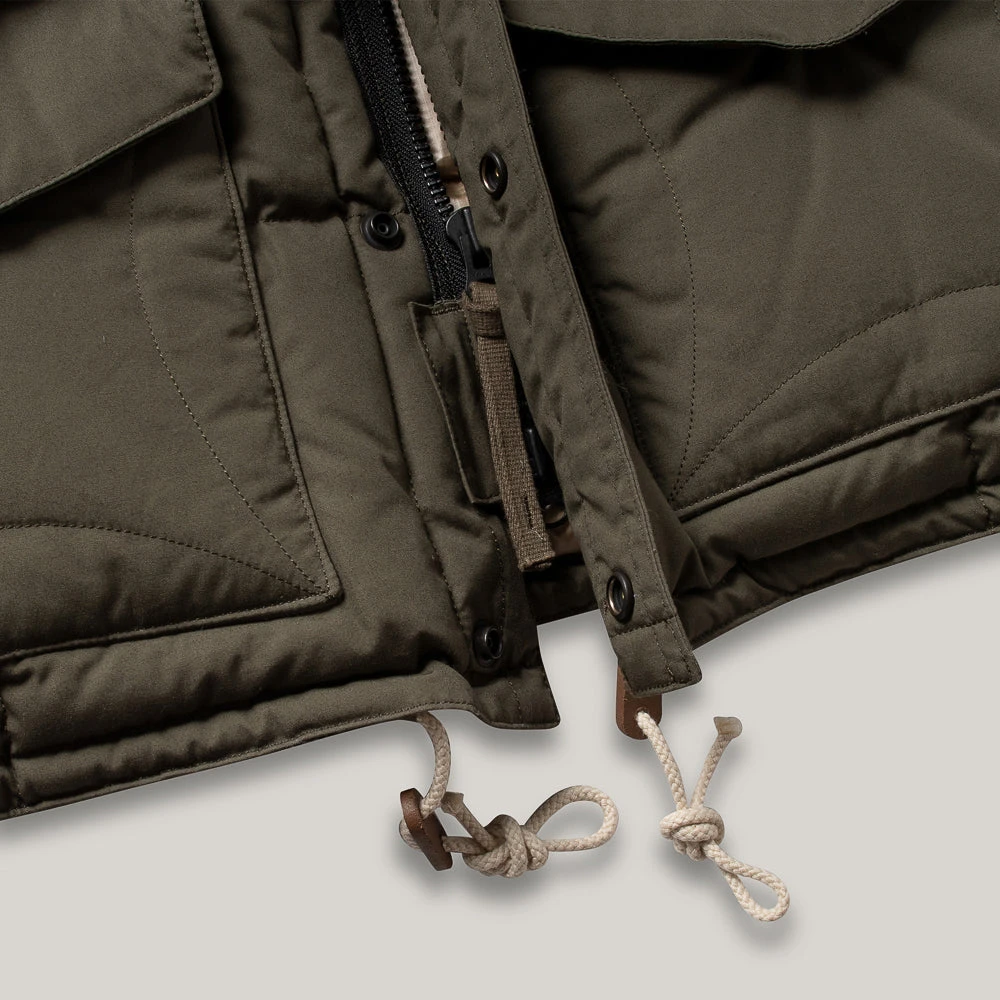 This is the re-designed model from the Antarctic Expedition from 1956, shorter and more fitted than the WP-H model but not much. Constructed out of Ventile cotton for the outer, over time it will fade beautifully to look like its vintage counterparts. Matched with a contrasting gold ripstop nylon inner for strength, details include covered buttoned front pockets with hand warmer section behind, press stud storm closure over the zip, permanent down-filled hood and inside pocket for valuables. Formidable.